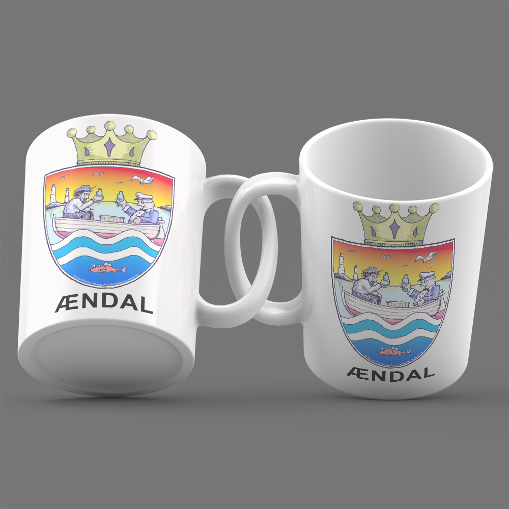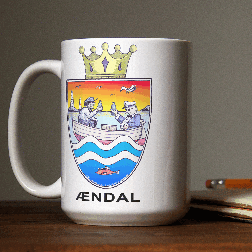 Ændalskoppen er det perfekte kruset for deg som ønsker å starte dagen med et smil. Dette keramiske kruset er designet har motiv av den talentfulle tegneren Øystein Bjørløw og har et helt spesielt motiv – det nye humoristiske “byvåpen skjoldet” for Arendal.
